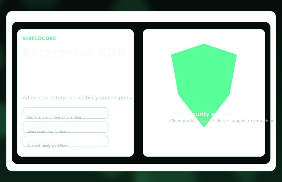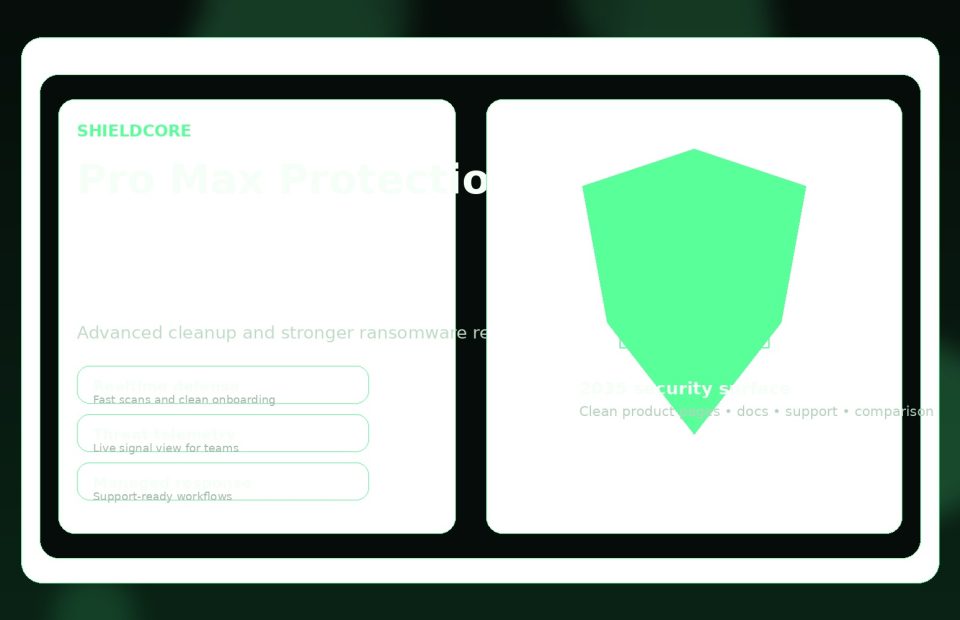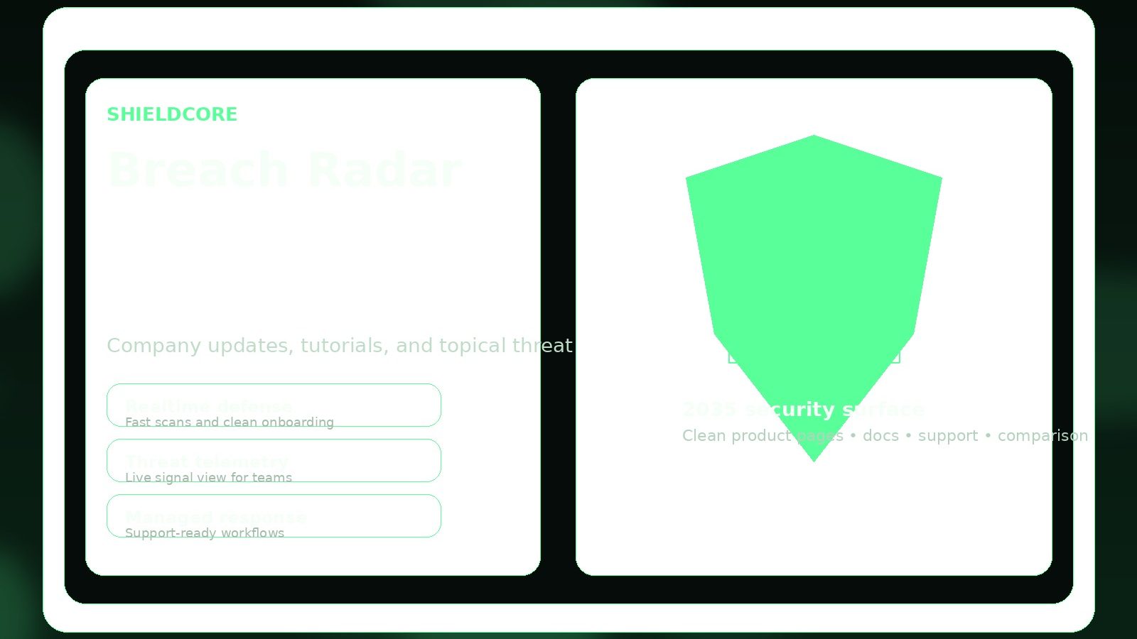 ShieldCore blends product detail pages, docs, comparisons, support, tutorials, and generic cyber news into one premium front-end system that can convert visitors while still supporting long-form SEO content.